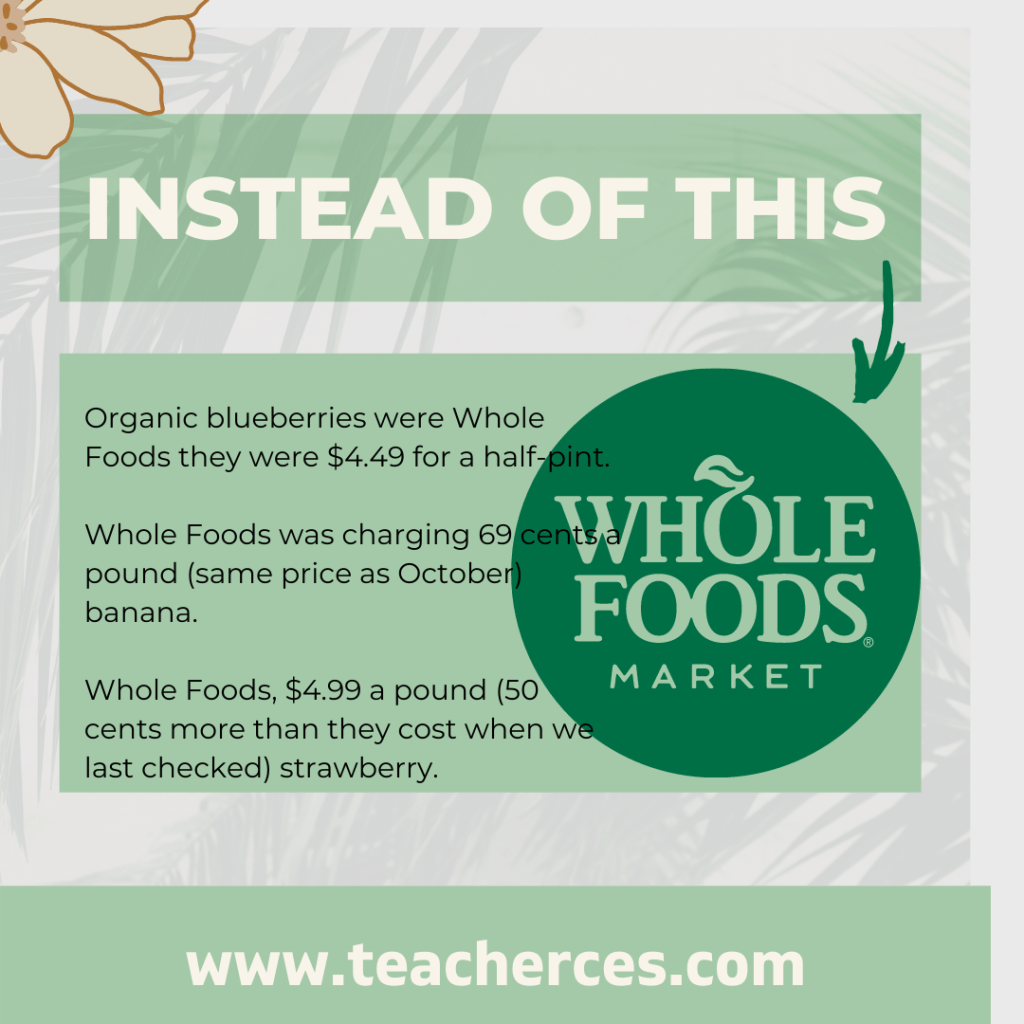 Honestly, I don’t know where your head is at on this matter but the point is to stop wasting money shopping weekly at the high-end (Whole Food) grocery store.
